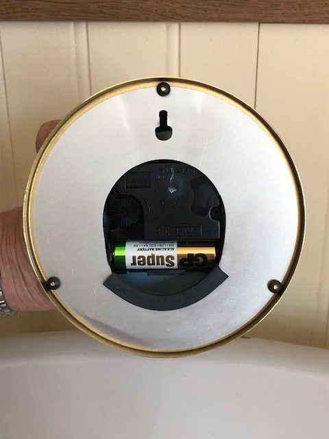 Chrome Clock 125mm. Bulkhead style, spun chrome. Quartz driven. Battery provided. 3 chrome screws provided for flange fitting.