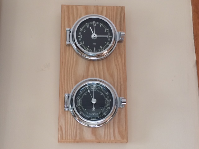 PRESTIGE Retro Clock and Barometer set. Marine quality chrome mounted on solid ash plinth. Prestige Marine Range. The Clock and Barometer instrument case is cast brass with beautiful, top quality chroming with bevelled glass and fitted rubber sealing ring. Lacquered and varnished, virtually maintenance free. Hinged door design allows easy access to instrument mechanism for any necessary adjustment. Quartz driven clock battery provided.