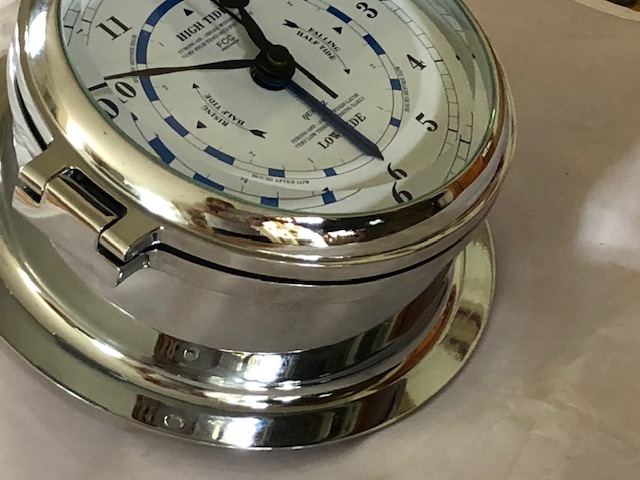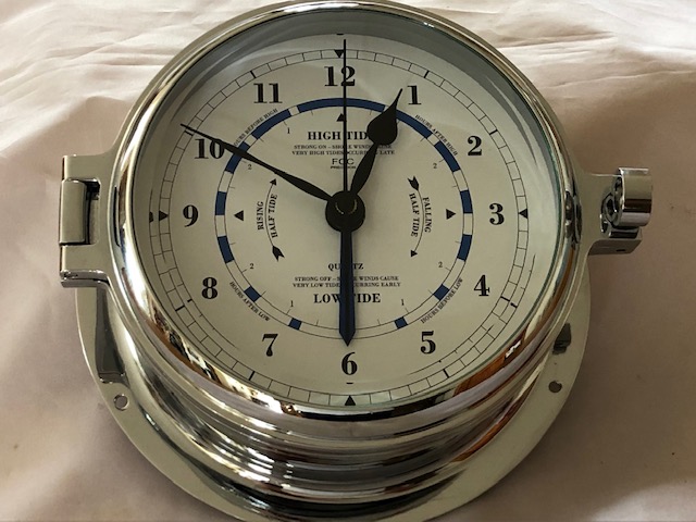 Stunning, quality chrome Time & Tide Clock shows both the state of the tide and the time of day.
